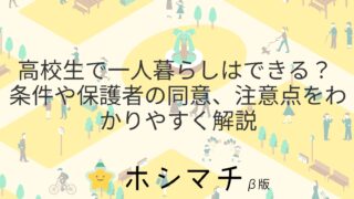 賃貸の話高校生で一人暮らしはできる? 条件や保護者の同意、注意点をわかりやすく解説 高校生が一人暮らしを考える際に、さまざまな条件と注意点を理解しておくことが重要です。高校生の一人暮らしは保護者の同意が必要です。高校生が一人暮らしを始めるためには、保護者の同意が不可欠です。未成年者である高校生が住まいを借りるには、法律上、... 2025.11.09賃貸の話