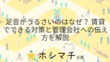 近隣住人の生活音が気になる場合は、物件の選定時に音の伝わりやすさを確認しましょう。