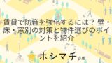 物件選びの段階から騒音対策を考慮することも重要です。以下のポイントを基に、物件を選択する際にも防音性能を確認しましょう。